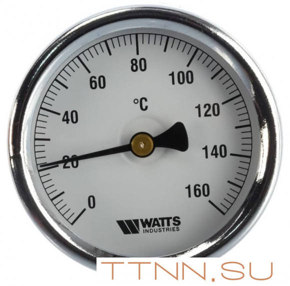 Термометр биметаллический с погружной гильзой Watts (Ваттс) F+R801 (T) 100/100 (1/2",160"С) – это прибор из группы контрольно-измерительных устройств, который служит для постоянного мониторинга за параметрами температуры в отоплении и горючем водоснабжении. Термометр может применяться в самых разных областях народного хозяйства.